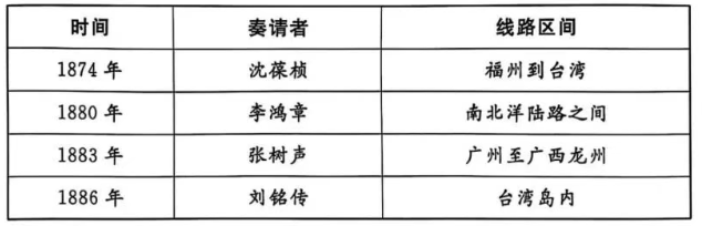 1874—1886年洋务派奏请铺设电报线路举要