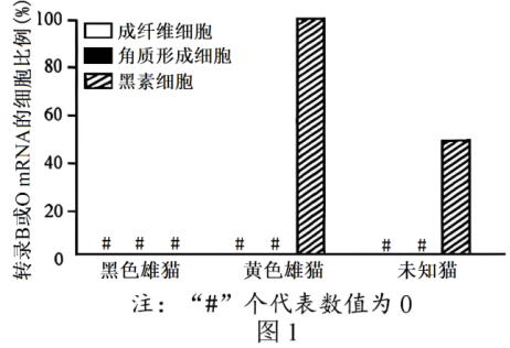 (2)研究发现:①在家猫发育过程中,体细胞的2条X染色体同时存在时,会随机失活其中1条;②X染色体上1对等位基因参与毛色控制: (黑色)、 (黄色)和 (玳瑁色)。对家猫胚胎皮肤细胞进行检测,统计能转录B或0基因的不同类型细胞比例,结果如图1。