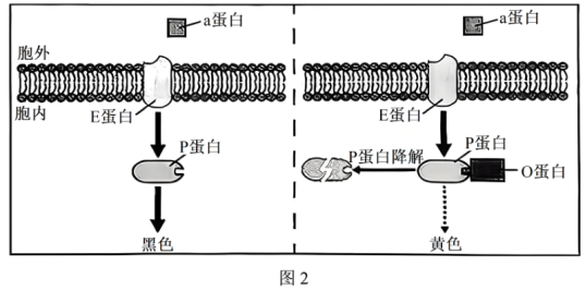 (3)性染色体基因(B/O)能影响常染色体基因对毛色的控制。E蛋白通过P蛋白控制毛色形成;O蛋白存在时,与P蛋白结合,导致P蛋白降解从而改变毛色,机制如图2所示。若无E蛋白则毛色皆为黄色。