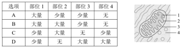 下图是植物细胞局部亚显微结构示意图。在有氧呼吸过程中,细胞不同部位产生ATP的量不同。以下选项正确的是( )