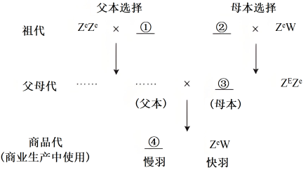 某品种的初生雏鸡慢羽性状(羽毛生长慢)由Z染色体上的E基因控制。为提升商业生产中依据快/慢羽判断雏鸡雌雄的准确性,研究人员设计了育种路线(如图)。下列叙述错误的是( )