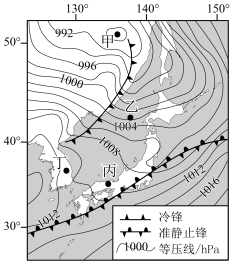 丙地受冷气团控制,气温持续降低 |