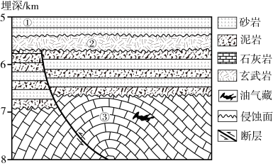 ③岩层晚于①岩层形成 |