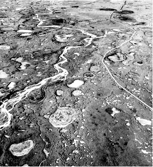 热融湖是因热融作用引起地表塌陷形成的凹坑集水而成。近年来,我国青藏高原上的热融湖发展迅速,在一些地区形成了繁星一样的“星宿海”,冬季湖泊冰面可见一串串甲烷气泡冻结在冰层中。有些热融湖也会出现停止生长现象,湖盆会被水生植物、泥炭和沉积物充填。下图示意青藏高原热融湖景观。