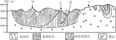 (2)指出图中甲、乙、丙、丁中最可能产出锂矿的地方,并说明理由。