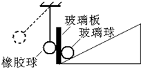 ①将单层玻璃板固定在有一定倾角的斜面上,把玻璃球靠在玻璃板的右侧,把橡胶球悬挂在支架上靠在玻璃板的左侧(如图)。