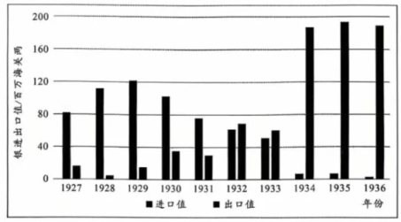 下图反映了1927—1936年中国银进出口波动的加剧。这( )