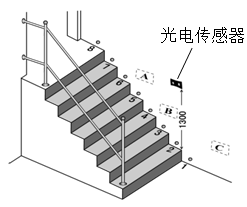 (2)测试时发现光电传感器的安装位置(如图)有缺陷, (成人/老人/儿童)在上楼时灯不易点亮,该传感器应安装在 (A/B/C)区才最合适;单个光电传感器只能实现人上楼的照明,可用 (湿度/声音/气敏)传感器替代原来的光电传感器解决问题。