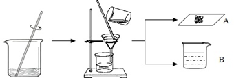 据有关资料介绍:将贝壳(主要成分是碳酸钙)灼烧后与草木灰(主要成分是碳酸钾)在水中作用,可以得到氢氧化钾。某科学课外小组的同学们为了制取氢氧化钾,将少量碳酸钙充分灼烧后的固体放入烧杯中,再向其中加入一定量10%的碳酸钾溶液,充分反应冷却后过滤、洗涤得到固体A和溶液B,操作步骤如图所示。请你与小组同学共同完成以下探究: